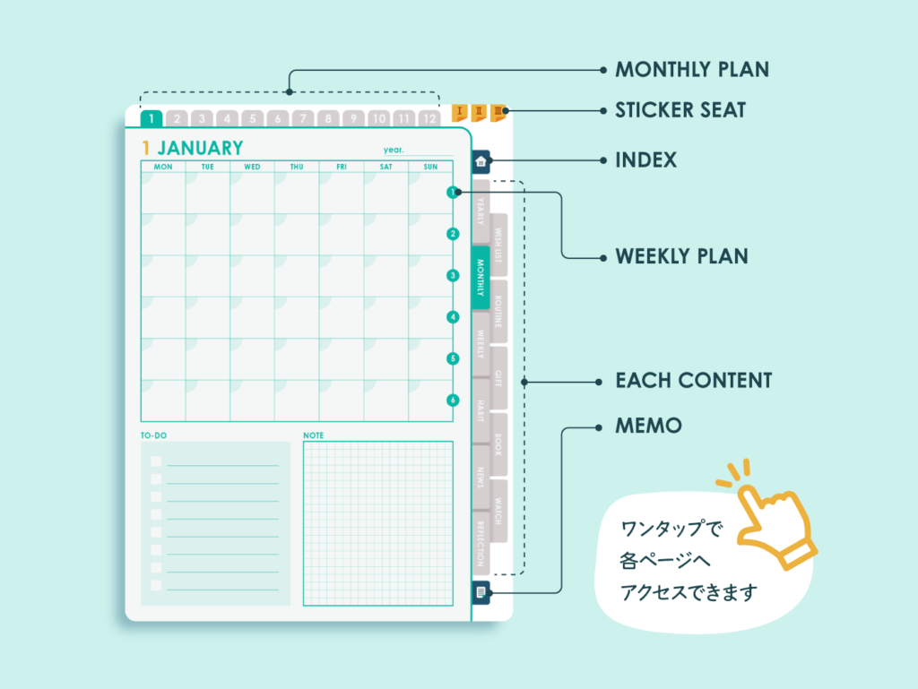 プランナー本体 Goodnotes以外のノートアプリに読み込んで使用可能 - PNG file