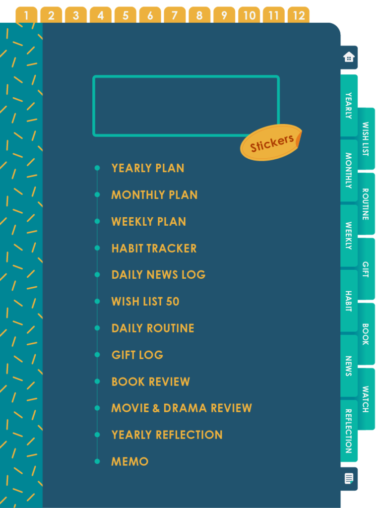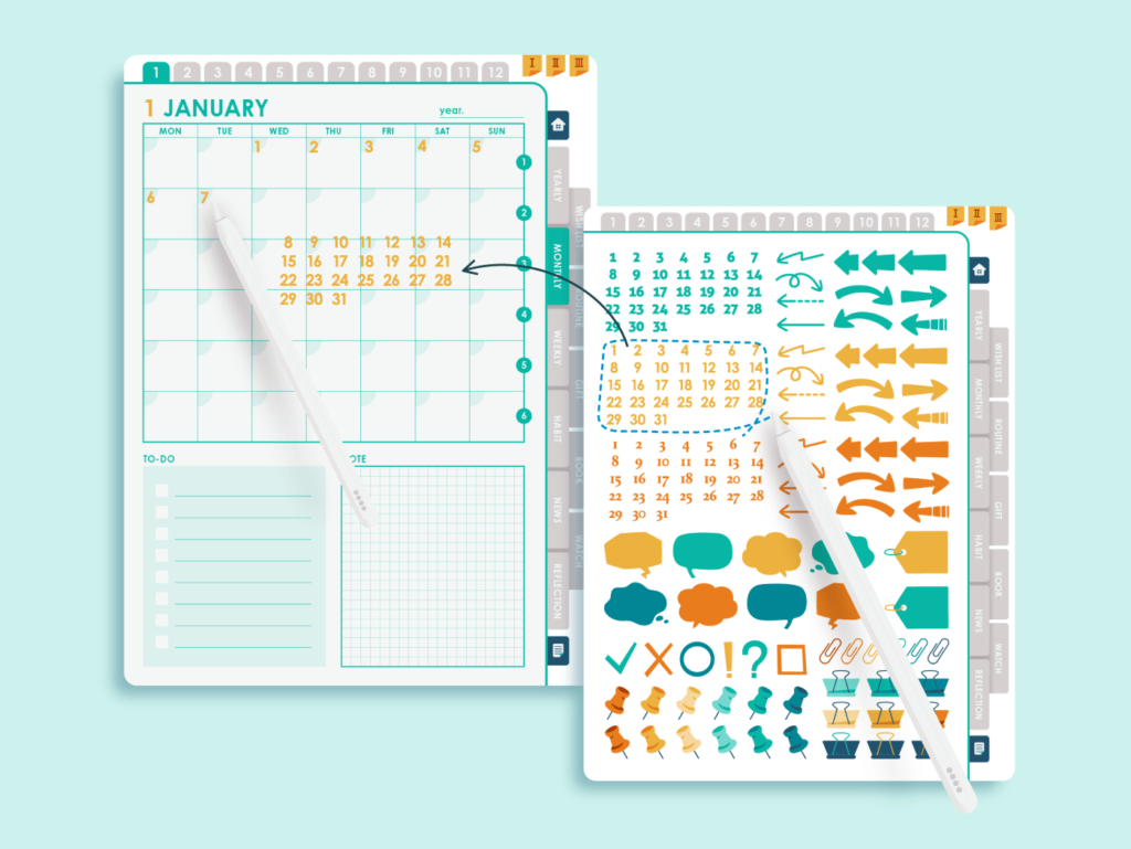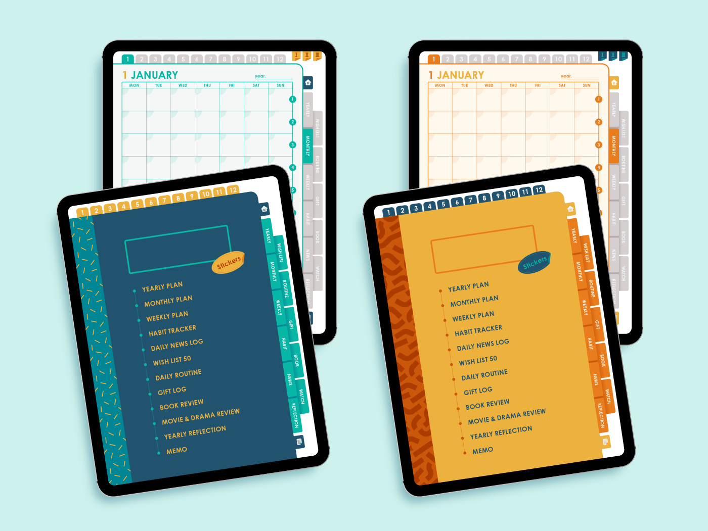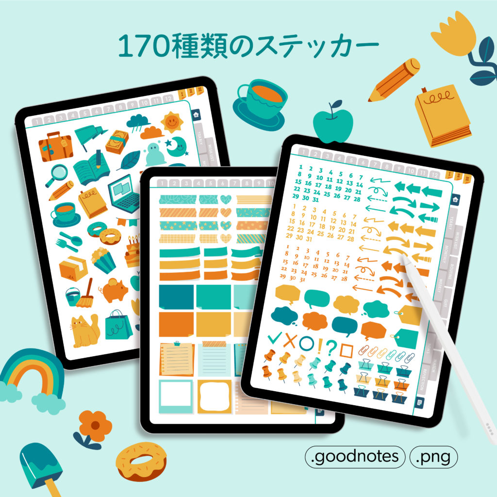 プランナー本体 便利なステッカーページ付きのGoodnotes専用ファイル - PDF file(グリーン or オレンジ)